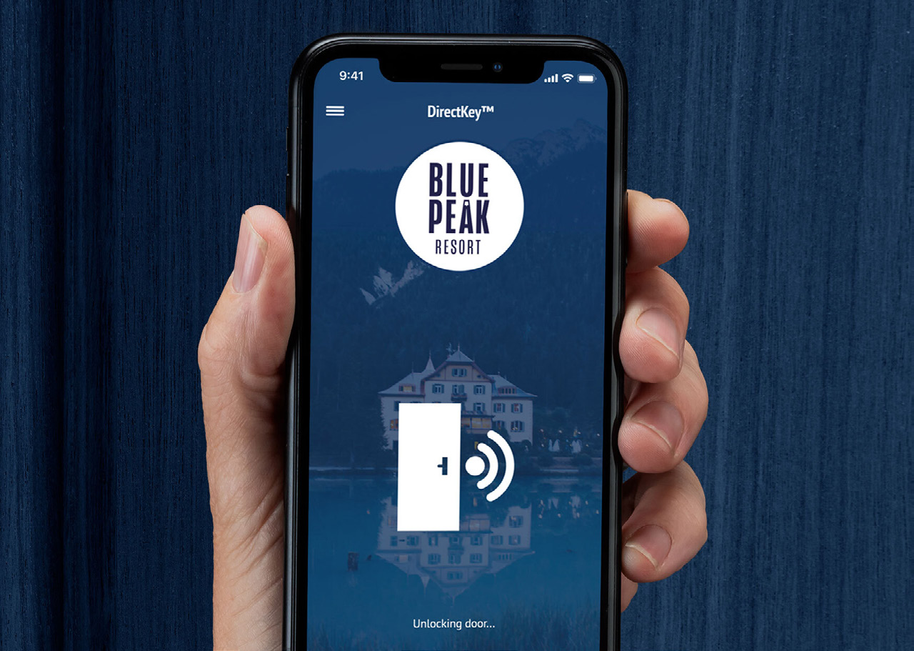 Con la tecnología de acceso móvil DirectKey integrada, los hoteles pueden implementar una solución de llave móvil personalizable que se integra fácilmente con las apps de fidelización de marca o con la app móvil DirectKey de Onity. Mediante una llave móvil segura en su smartphone, los huéspedes pueden disfrutar de un recorrido fluido por todo el hotel, abriendo su habitación sin contacto y con facilidad al acercarse a la puerta.