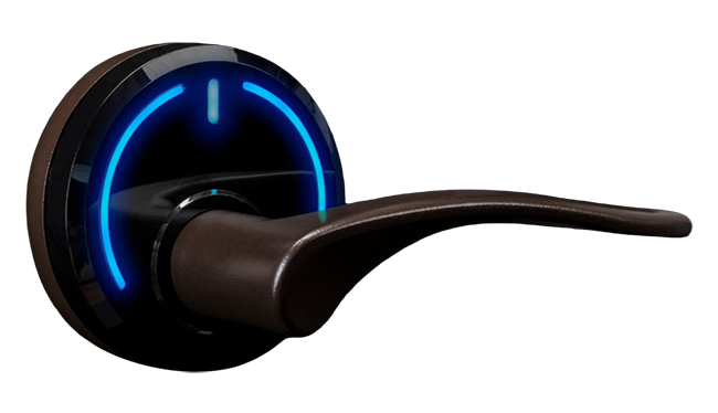 Serene, de Onity, es una hermosa cerradura diseñada por dentro y afuera para hoteles de lujo. El pequeño halo de luz representa tanto un diseño moderno como la tecnología de vanguardia de acceso móbil DirectKey, la que permite a los huéspedes acceder a sus habitaciones con facilidad al acercarse a la puerta.